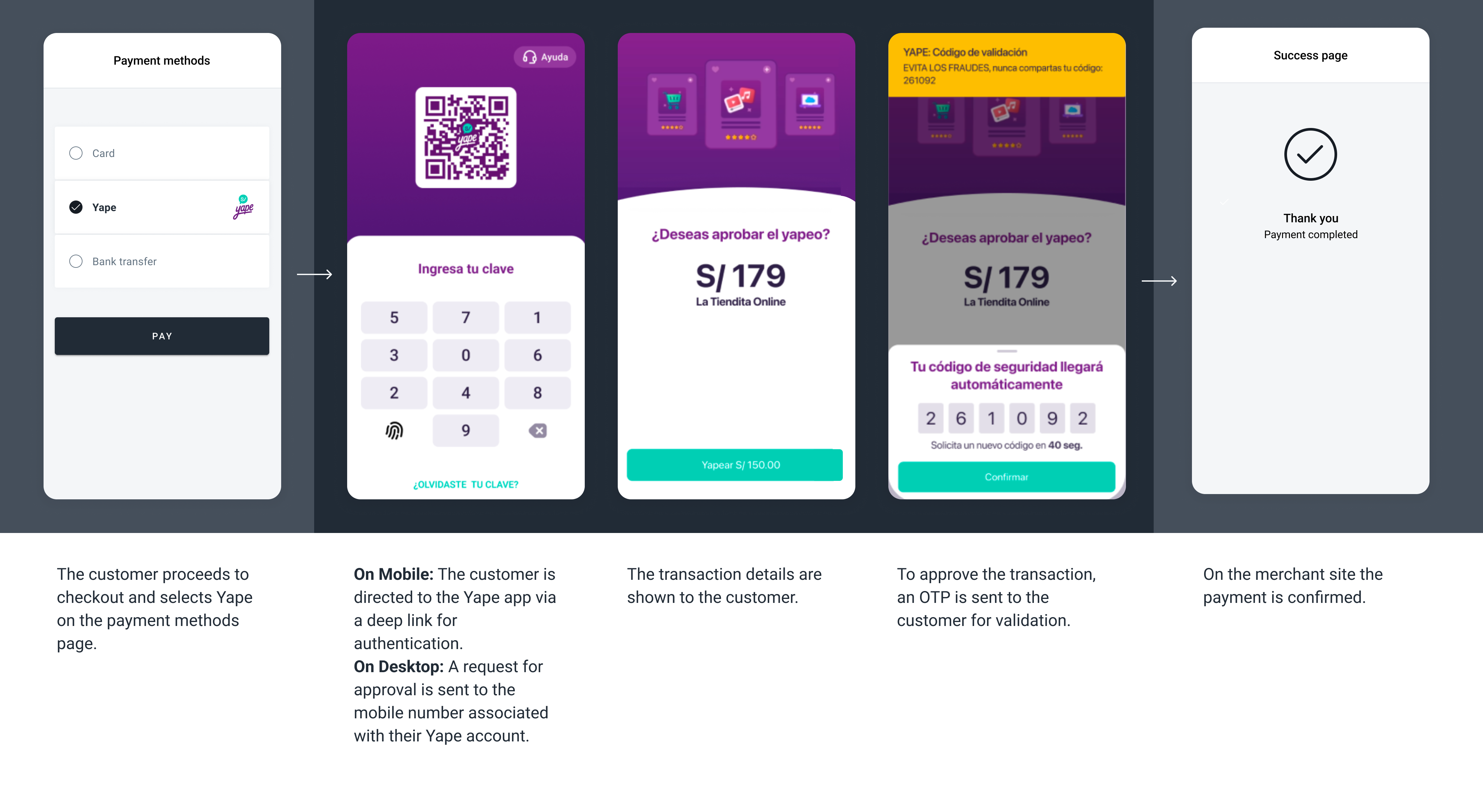 Yape is a popular wallet in Peru. With this payment method, users can pay with their Yape's balance.