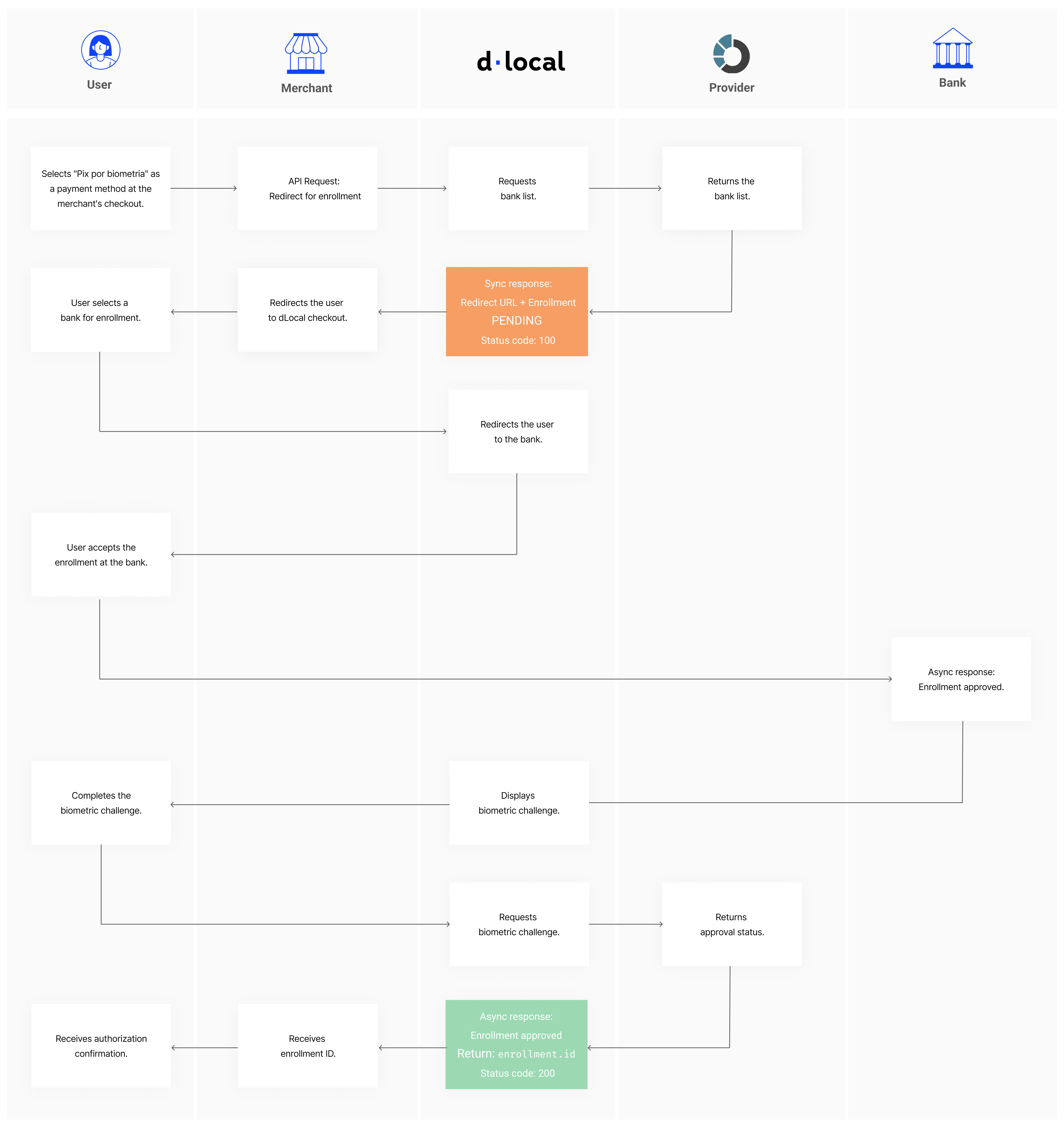 Once enrollment is completed successfully, dLocal provides an enrollment ID via API that uniquely identifies the approved biometric profile, enabling future payments without requiring additional biometric registration.